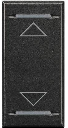 Copritasto Bticino serie Axolute serigrafato con simbolo delle frecce direzionali "SU GIU'", predisposto per eseguire due funzioni e dotato di lenti illuminabili.