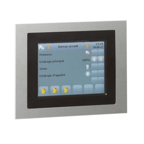 Bticino Legrand 0 488 84 : Display Touch Screen da 5.7 pollici per il comando di sistemi di automazione domestica KNX . Dimensioni 320x240 Pixel , retroilluminato a Led. Può gestire fino a 40 funzioni Konnex su 5 pagine : carichi luce , azionamenti motorizzati , temperatura , ventilazione e HVAC , scenari , visualizzazione sullo stato dei carichi.