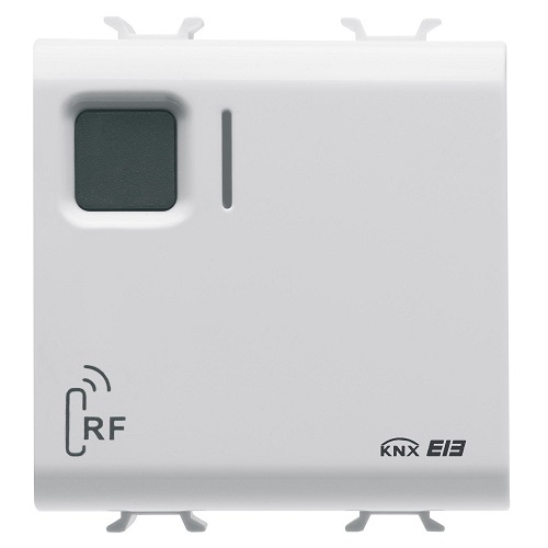 Ricevitore RF ( radiofrequenza ) Konnex ad 8 canali per interfacciare apparecchi di comando del sistema RF agli attuatori KNX. Consente l'invio di comandi ON/OFF , tapparelle , dimmer , scenari da utilizzare in abbinamento a pulsantiere RF , telecomando RF , rivelatori di movimento IR , cronotermostati RF e moduli di ingresso RF.