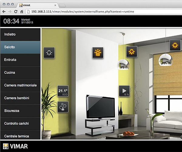 Il web server KNX VIMAR 01545 permette la supervisione del sistema domotico Konnex tramite browser , sia in locale che da remoto. Supporta diversi browser , anche da mobile su sistema operativo Android o IOS . All'interno del webserver va caricato un progetto realizzato col software ufficiale di progettazione e programmazione Konnex , ETS . Montaggio su guida DIN , occupazione di 8 moduli DIN.