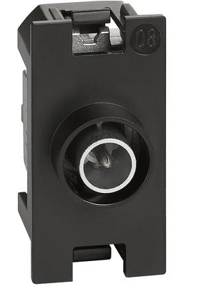 Presa coassiale passante Bticino serie Living Now per impianti di antenna centralizzati (anche telealimentati e centralizzati) ed impianti via satellite centralizzati con passaggio di corrente e di segnale per la selezione dei canali. Dotata di morsetti di collegamento schermati con viti imperdibili - Ø 9,5 mm - connettore maschio.